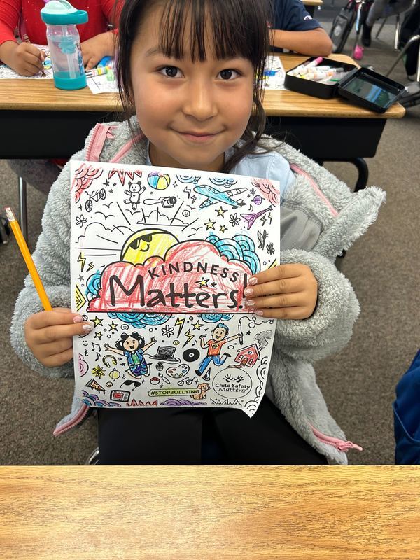 In addition to taking the pledge, students actively participated in spreading positivity by completing a "Kindness Matters" coloring page, reinforcing the idea that kindness plays a significant role in the fight against bullying.